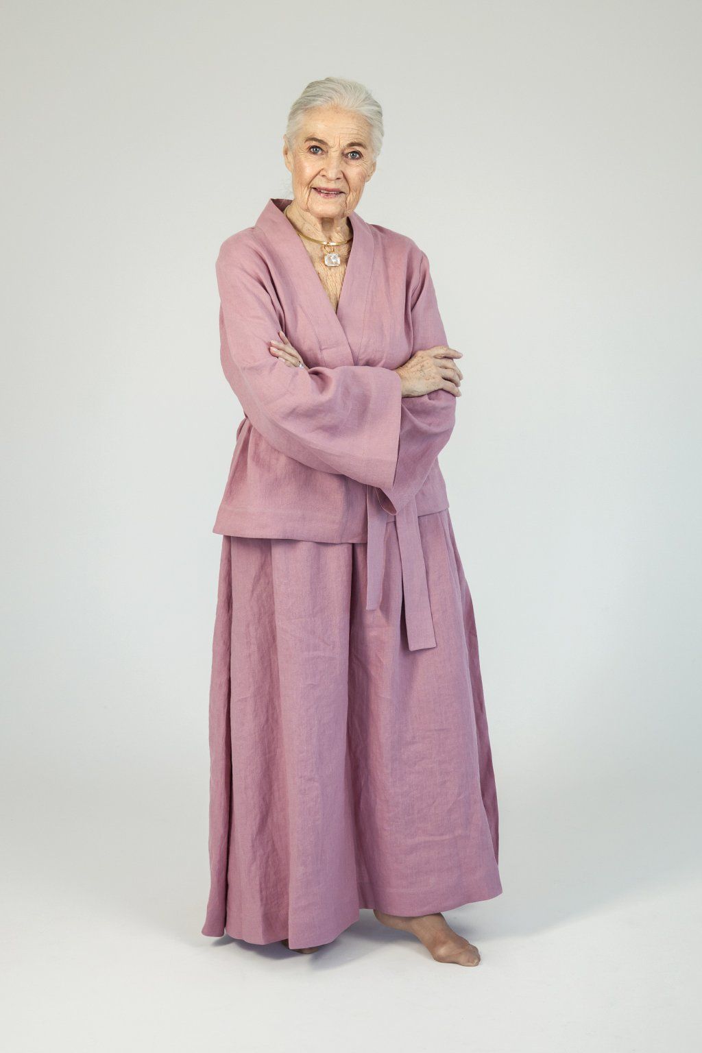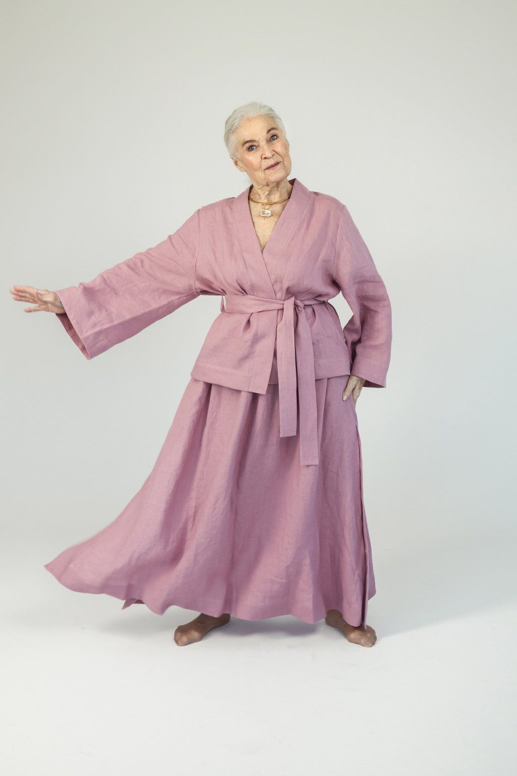 Vzdušná dámská maxi sukně ze 100% lnu v jemné starorůžové barvě spojuje přirozený komfort, ženský vzhled a pohodlí při každém kroku.